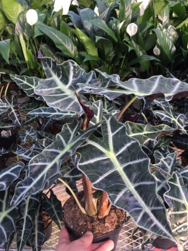 Many varieties available. This Alocasia ‘Molly’ has such contrast!