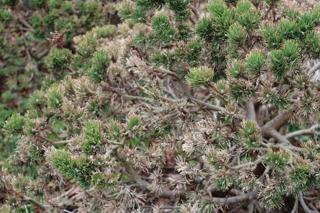 Pinus mugo ‘Jakobsen’ suffering from needle scale.