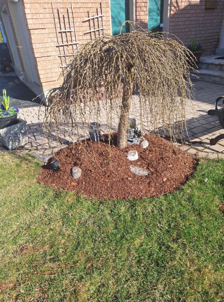 We prefer natural mulches as opposed to dyed mulch products. Often, dyed mulch products are made from recycled wood products and we have found undesirable material in these mulches. Natural mulches decompose slowly adding to the soil biome. Dyed mulches resist decomposition and fade leaving a garden that looks: meh…